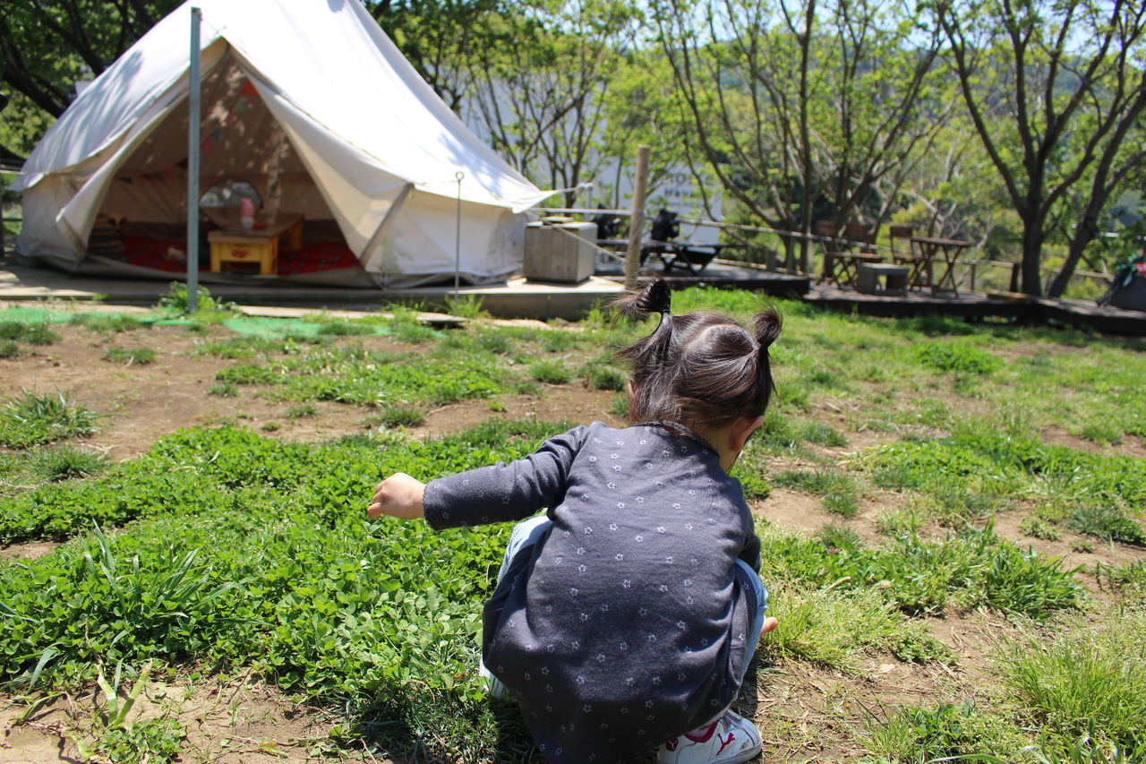 テントの中でキャンプ気分を味わったり。