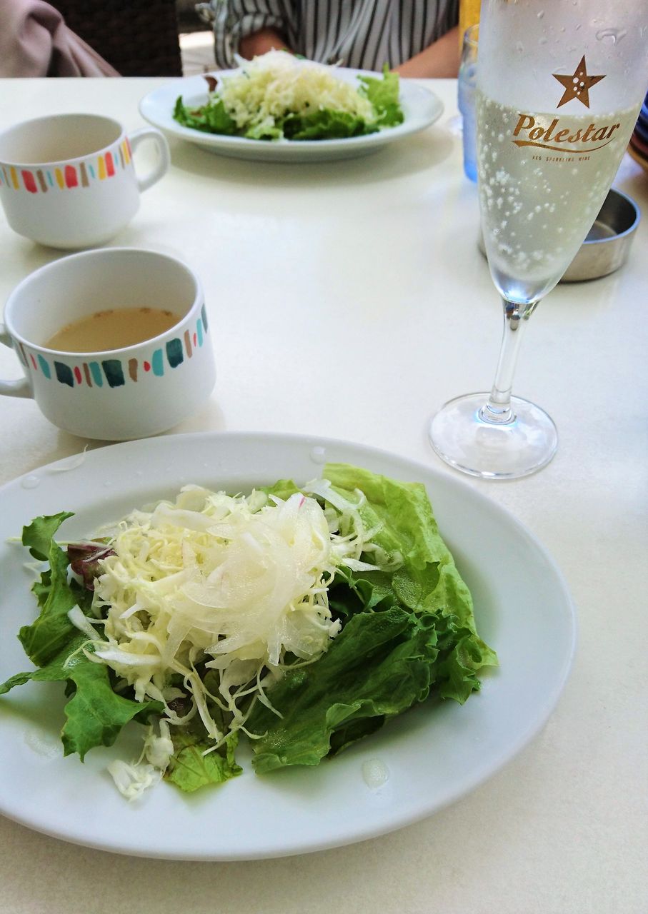 まずサラダ&スープ。そして+500円で付けれるスパークリング。