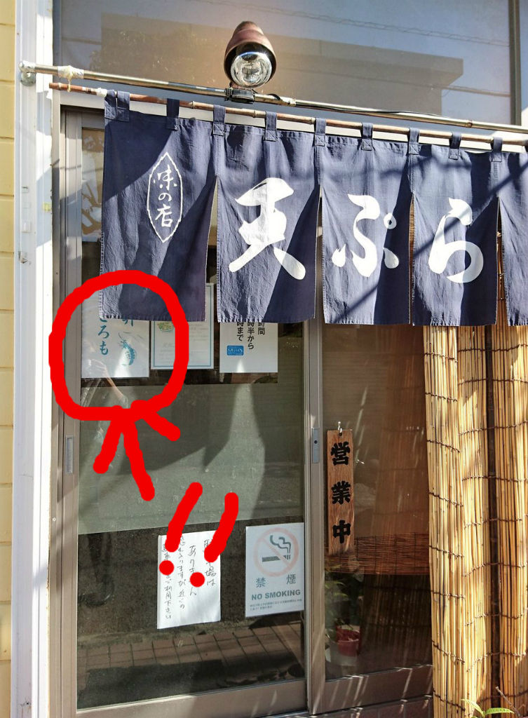 お店には「天ぷら」の暖簾がかかってるけど看板がなーい。