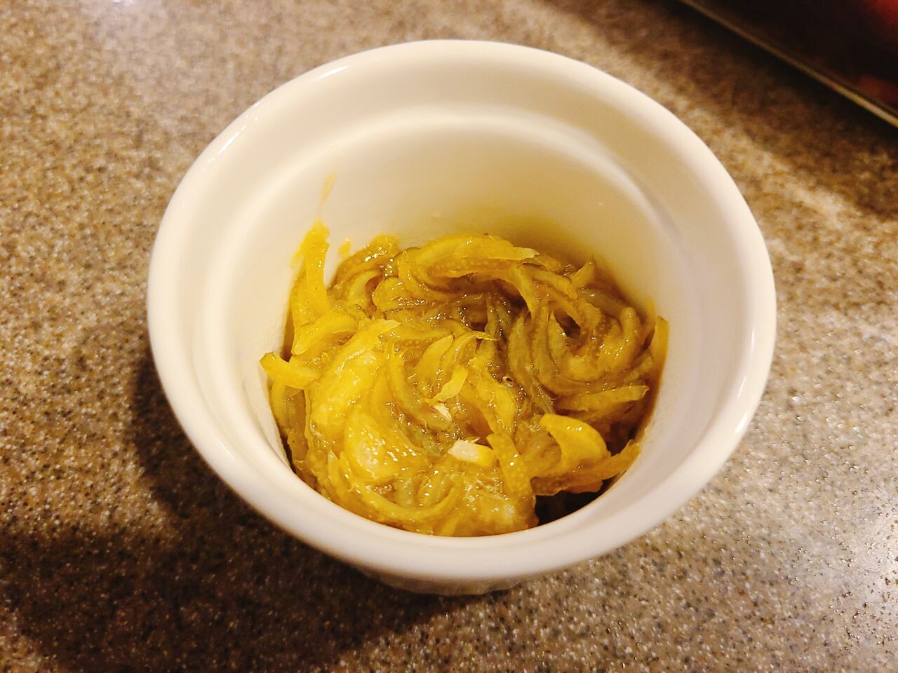 千切りにした皮と、薄皮剥いた身に適当にお砂糖まぶして混ぜて