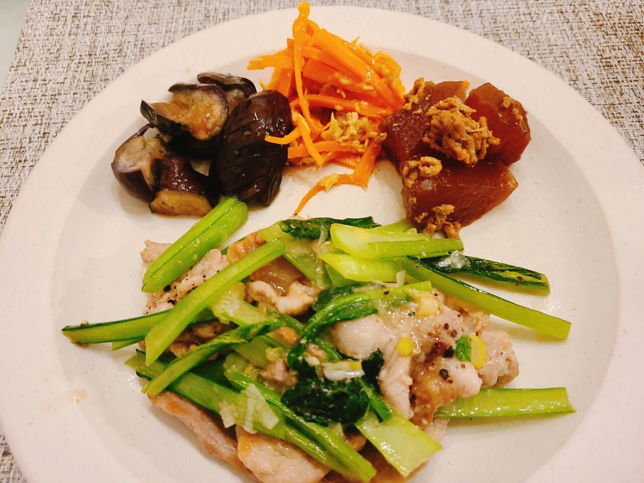 作ったのは小松菜と豚肉のネギ塩炒めだけです。