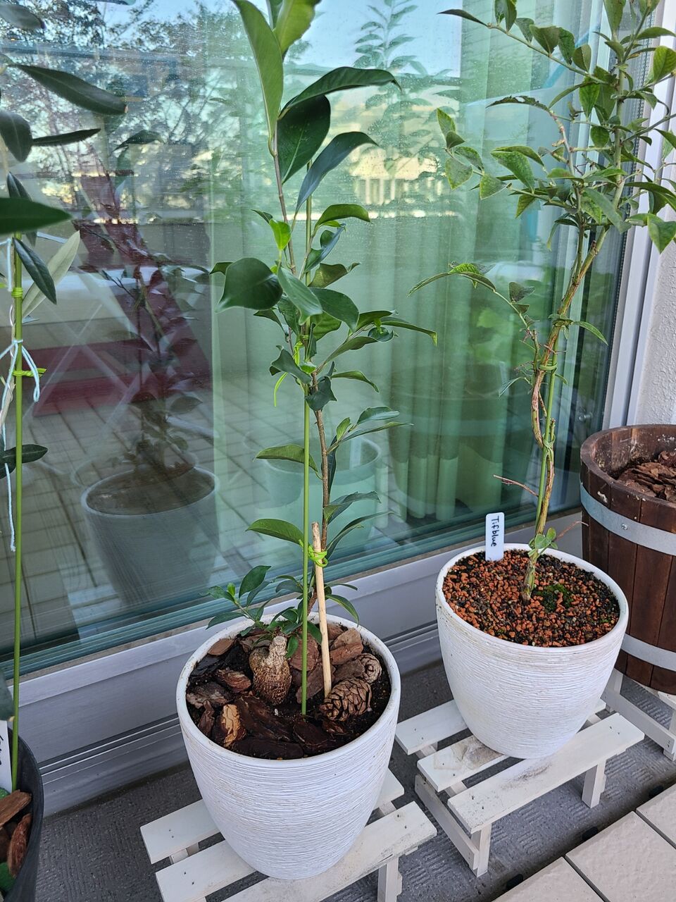3ヶ月経った今は、これくらいだったレモンの木が(一番奥)