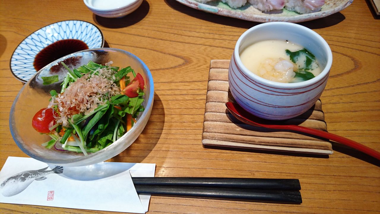 あと食べ放題には茶碗蒸しとサラダ、あら汁が付きます。