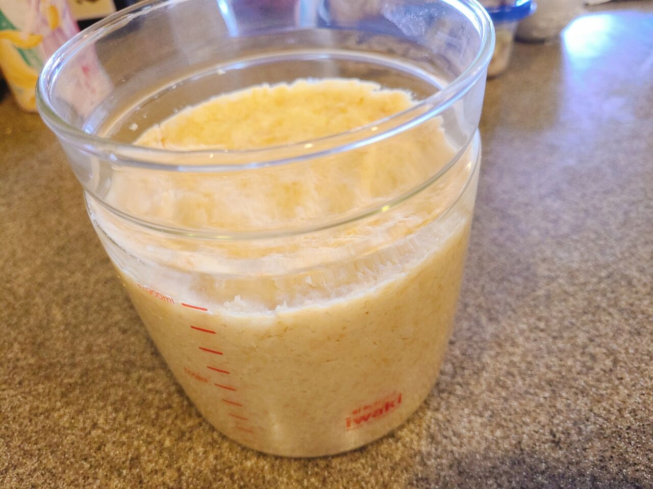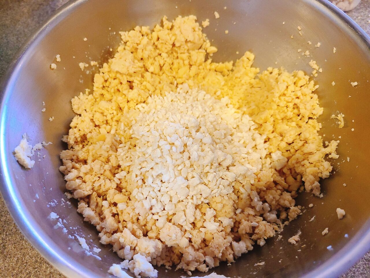 大豆を漬けておいたお水を少しずつ加えてさらにコネコネ。