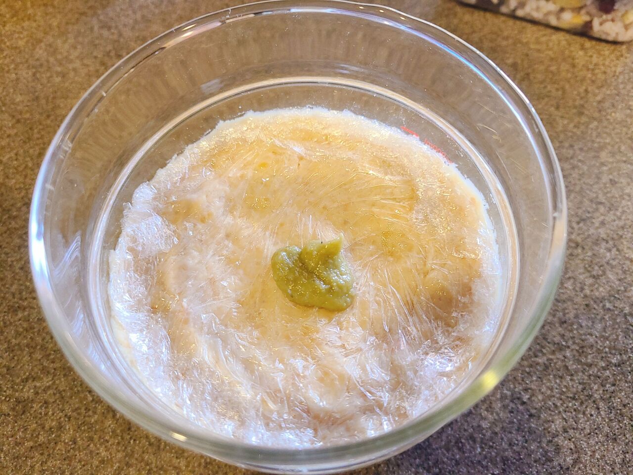最後にラップをかぶせて、その上にチューブのワサビを2㎝ほど。