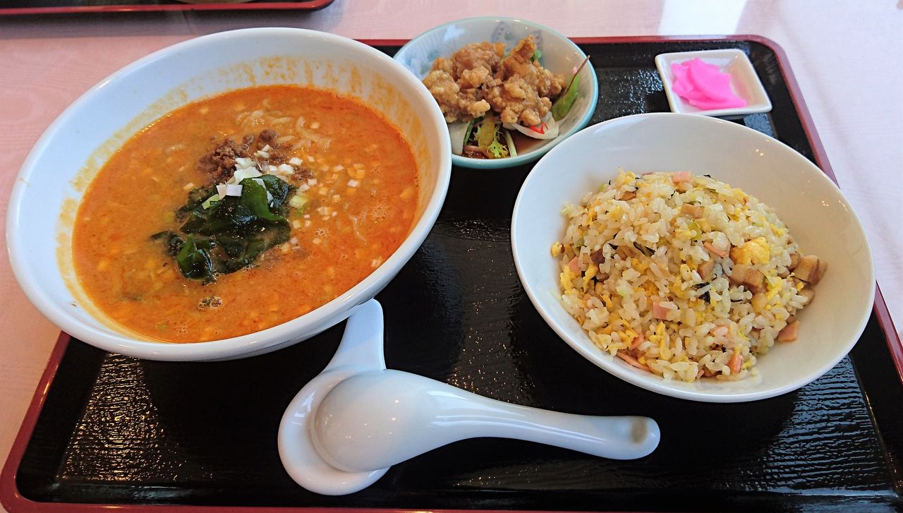 旦那ちゃんの頼んだ担々麺と炒飯のセットはこんな感じ。