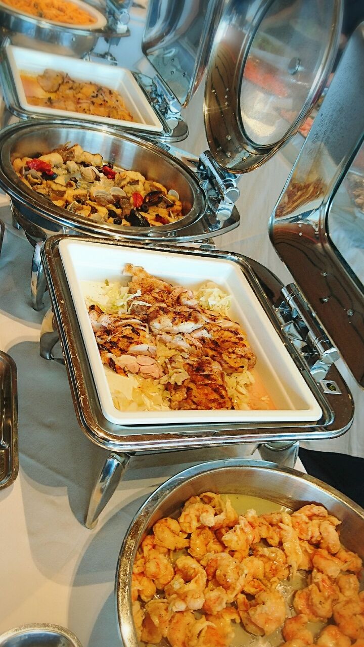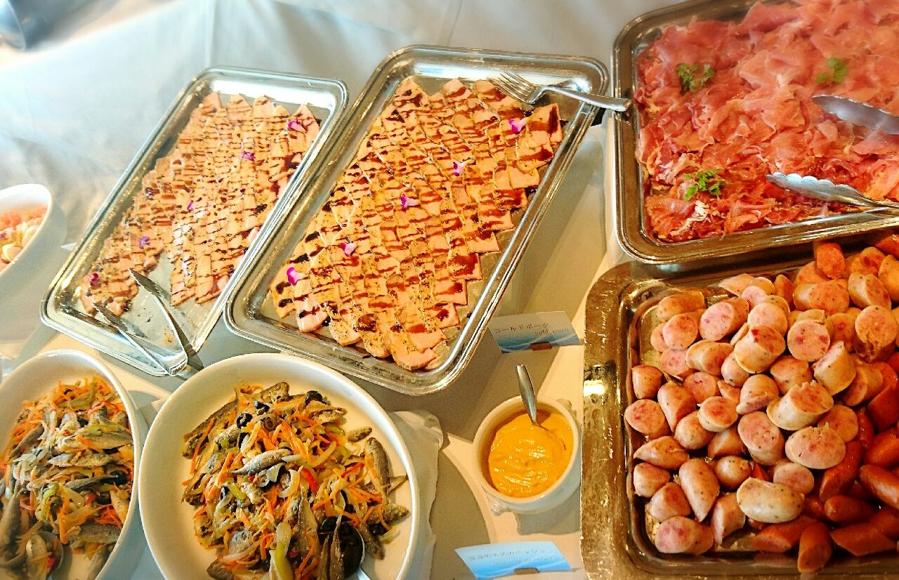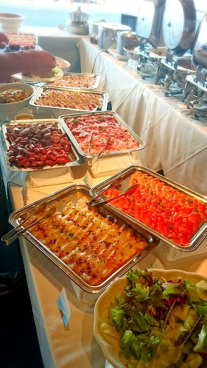 部屋の真ん中にブッフェメニューが並んでました。
