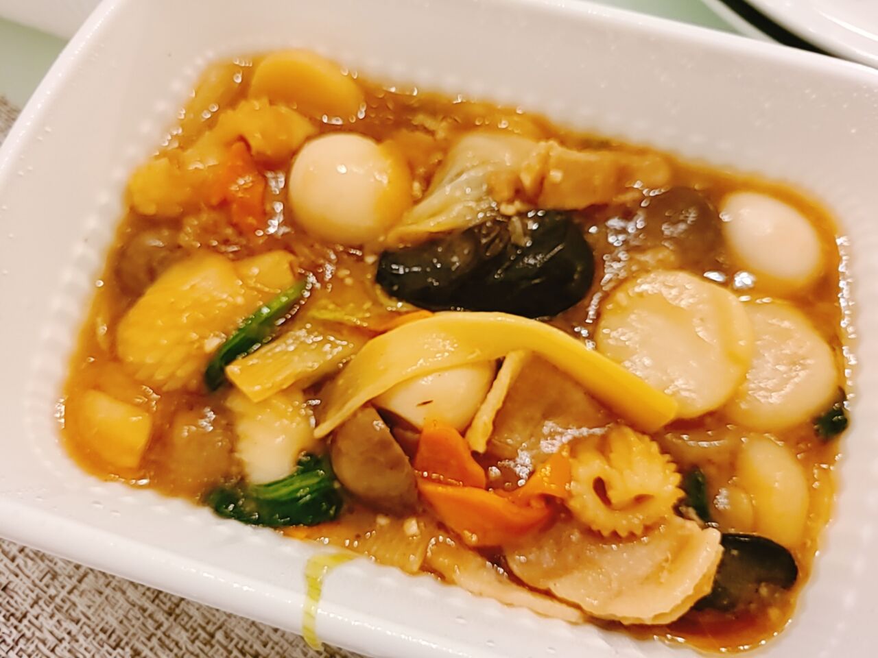 イカにうずらの卵にキクラゲ、しゃきしゃきしていたのは長芋?