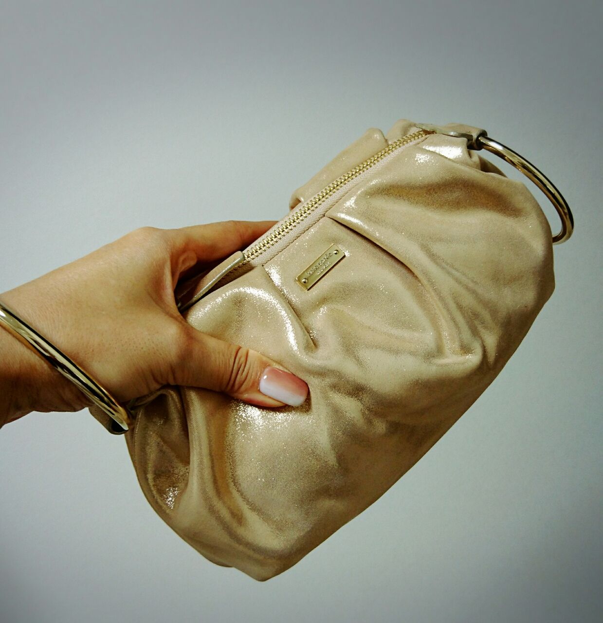 両サイドに大きなリングがついていて、そこに手を通せば立食パーリーでも邪魔になりませーん。
