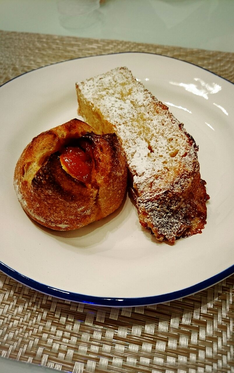 フレンチトーストと、アプリコットジャム&クリームチーズのパン。