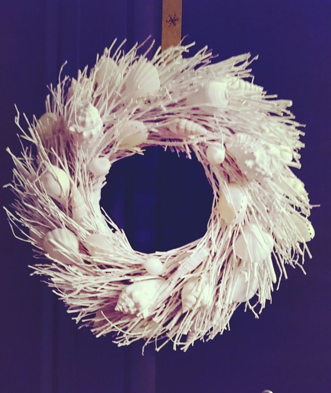 真っ白のリースに貝殻の飾りがついているの♥