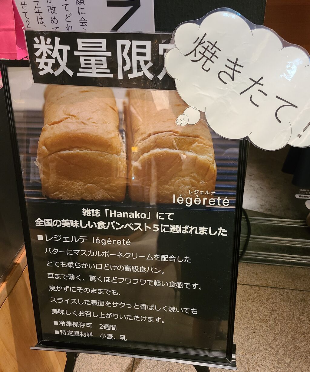 前述の全国の美味しい食パンベスト5に選ばれた食パン!レジェルテ650円!