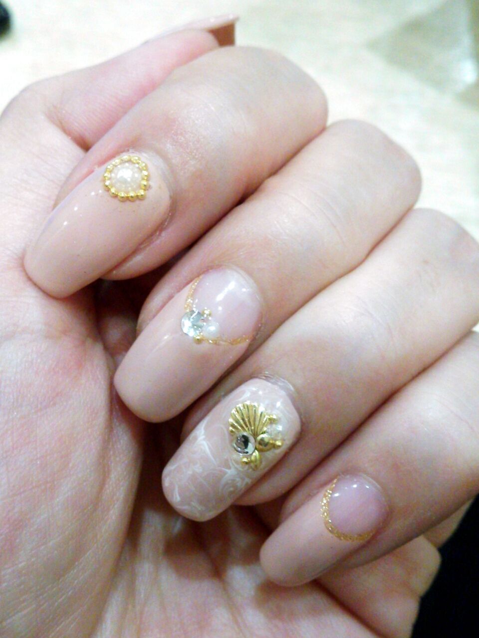 ネイリストのお姉さんを困らせながらも、ドレスコードにギリギリ引っ掛からない夏を感じるネイルにしてみました。