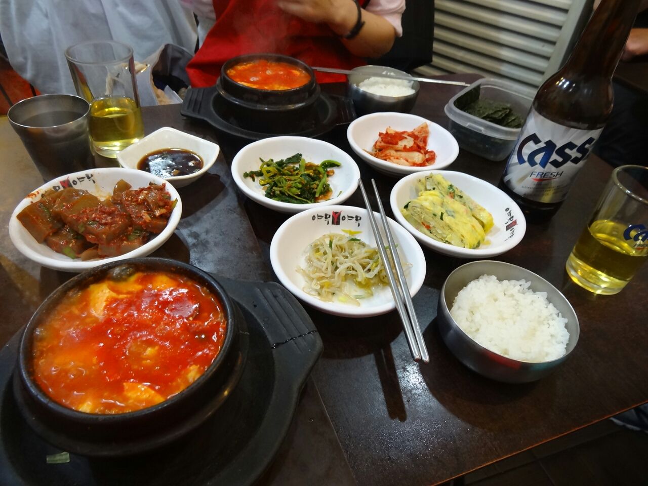 着いてソッコーでスンドゥブとビール。