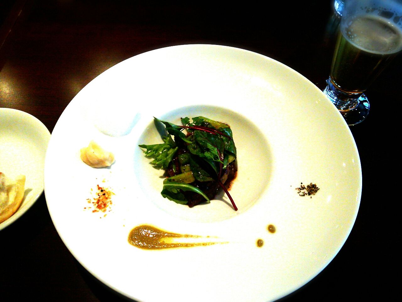 写真だと飛んじゃって見えにくいけど、レモンのメレンゲみたいなのかお皿のはしっこに盛られてて、これつけて食べるとさっぱり~♡