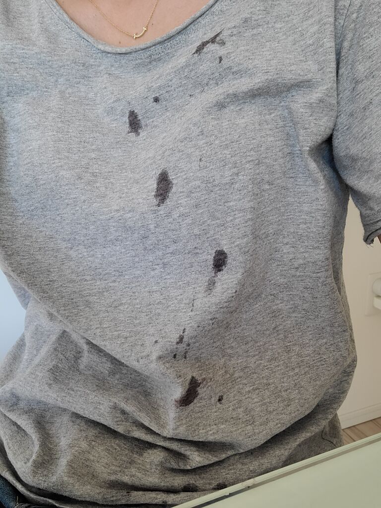 写真だと伝わらないけどシミが赤紫で軽くスプラッタ。返り血。