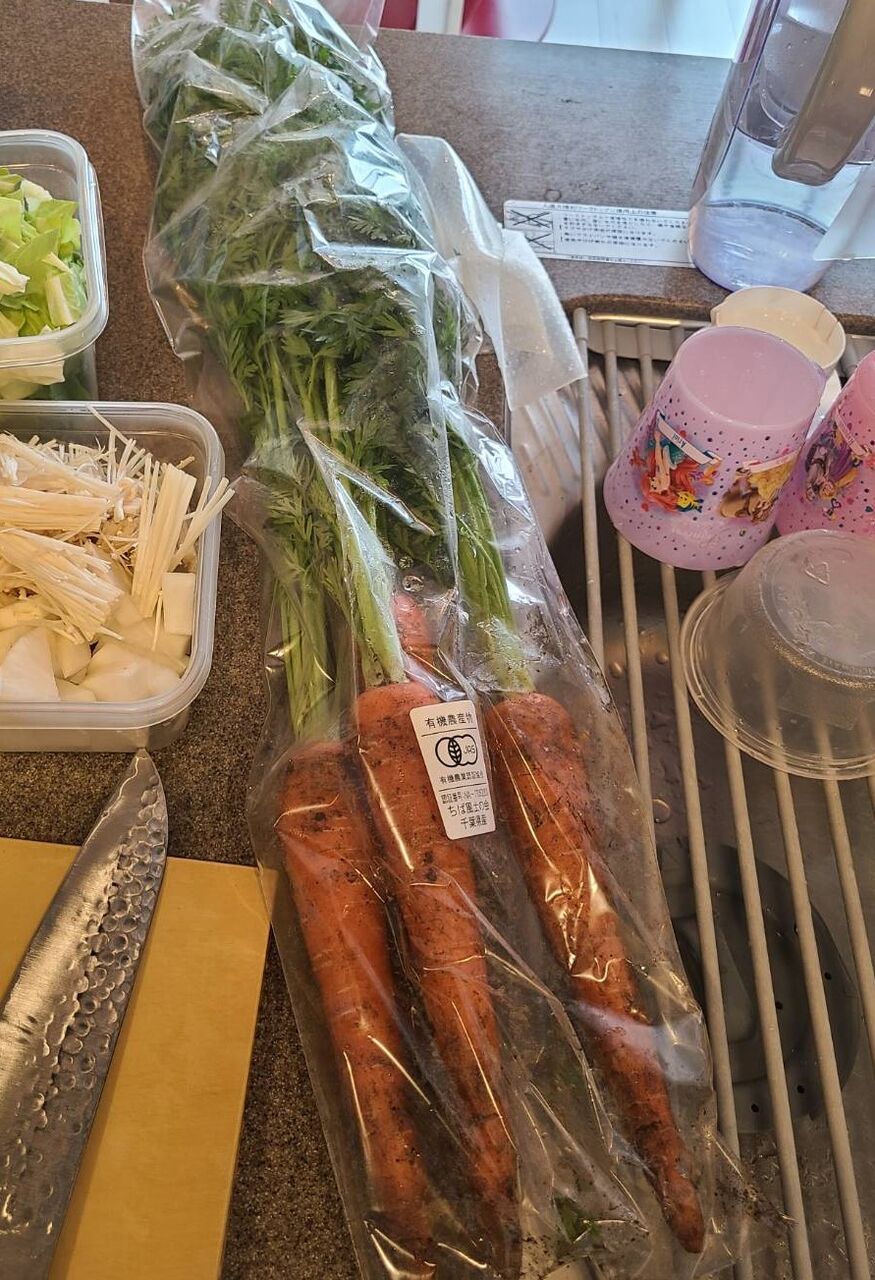いや人参の葉っぱってどうするん?食べるん??いや食べれるから葉付きで来てるんだよな…。