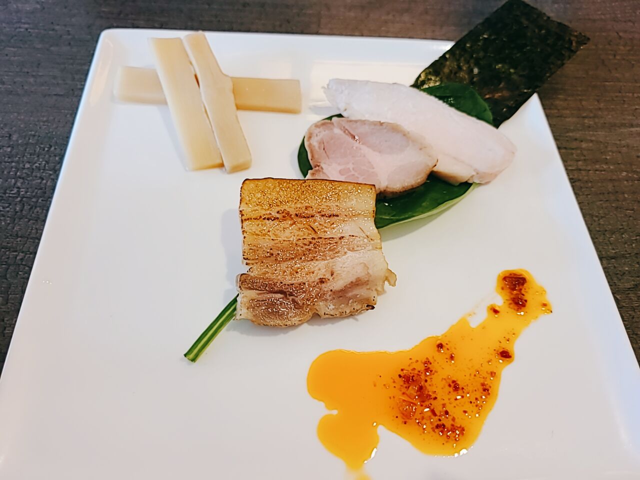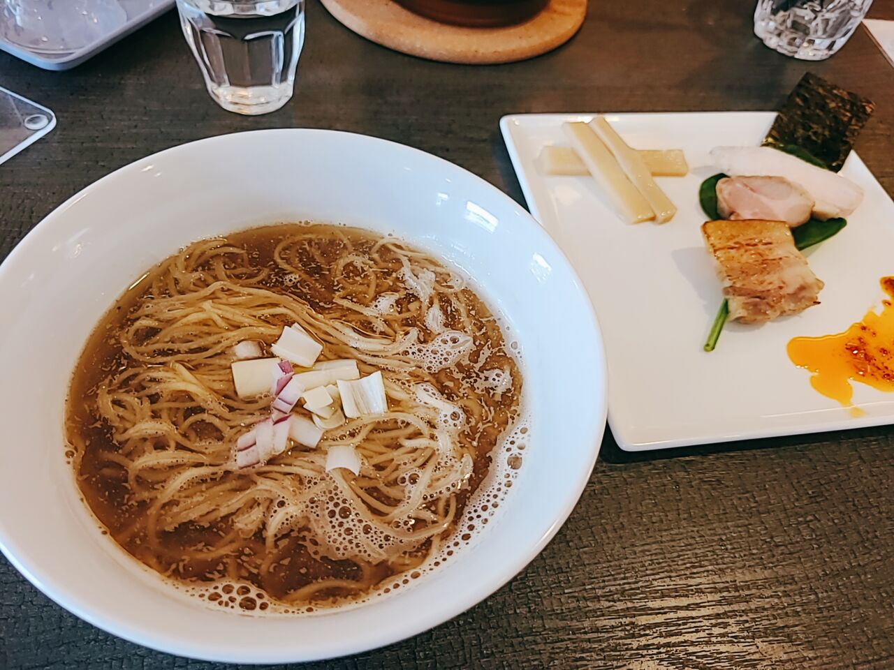 ラーメンとトッピングが別皿に盛りつけられている!おしゃれ!