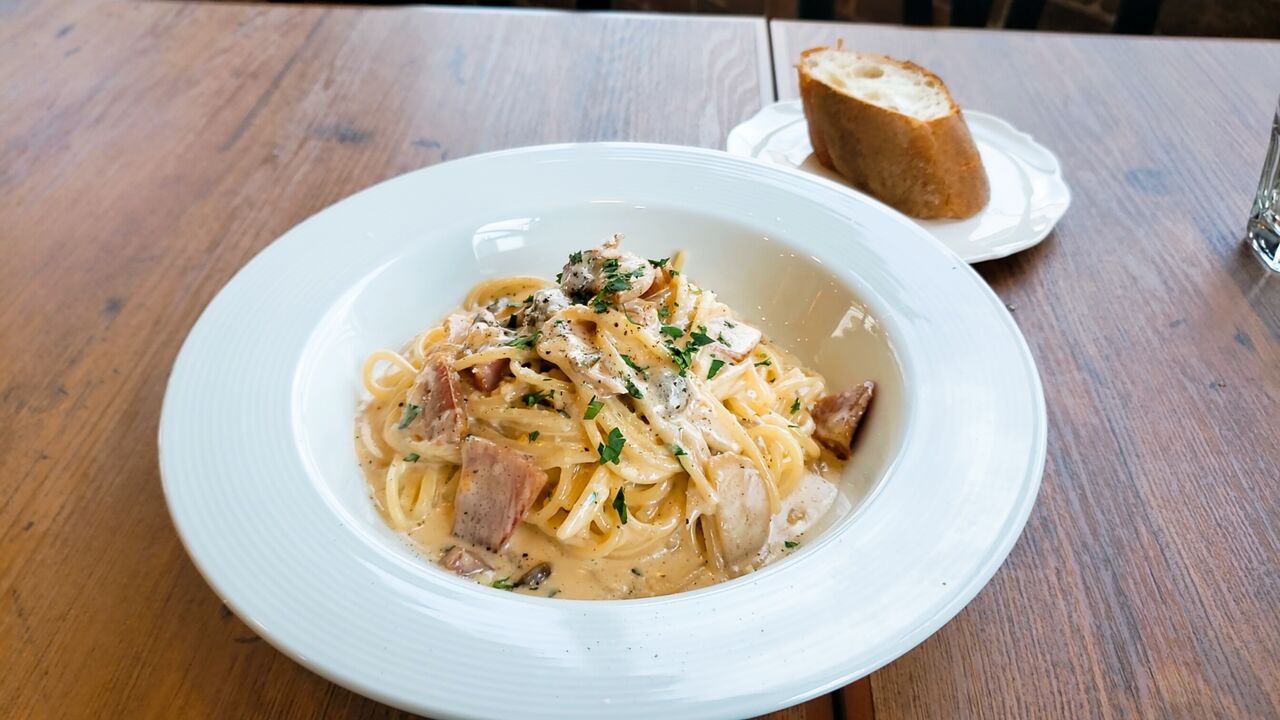 私桜エビ苦手なので選択肢はトマトベースかクリームベースのパスタ…。