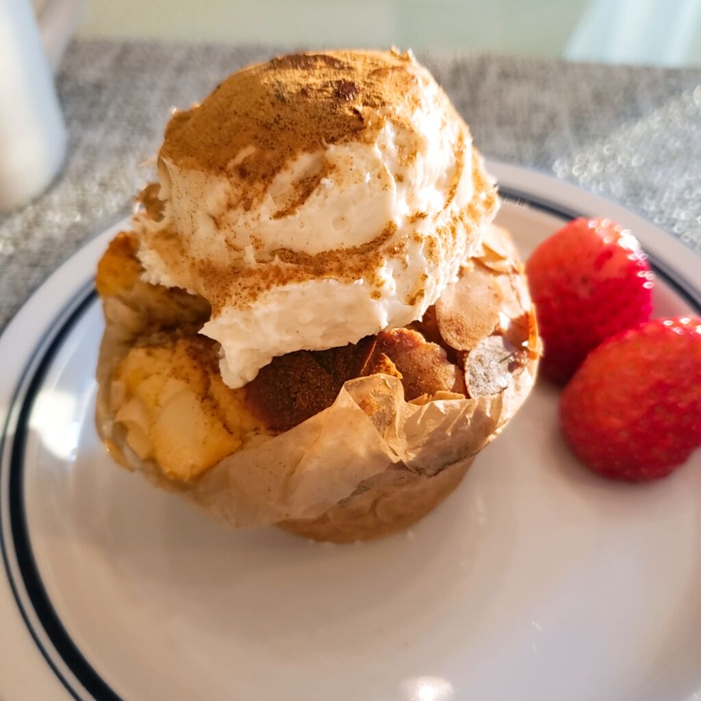 中にはチャイクリーム、リンゴジャム、アーモンドスライス。