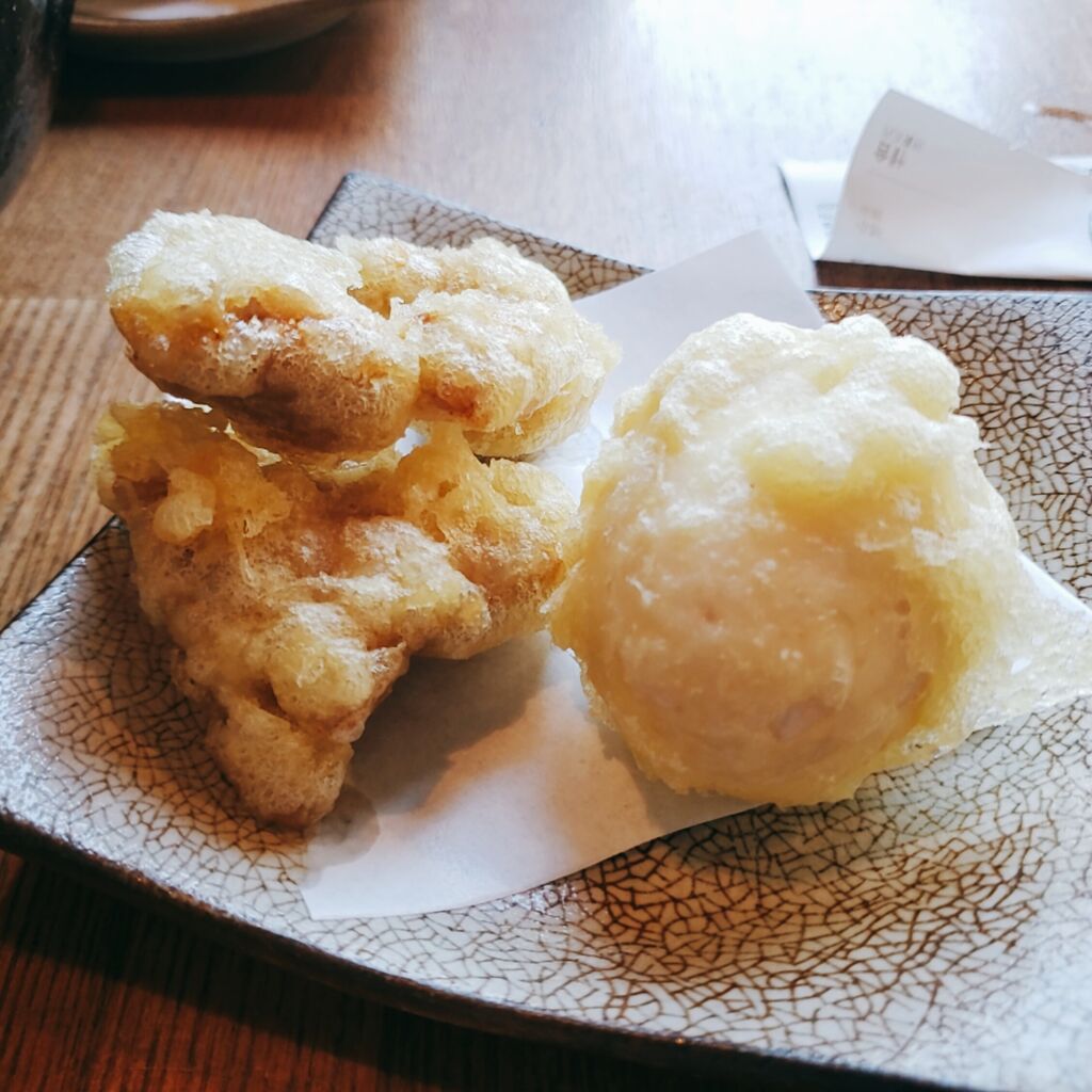 おやこ天は玉子と鶏の天ぷら。