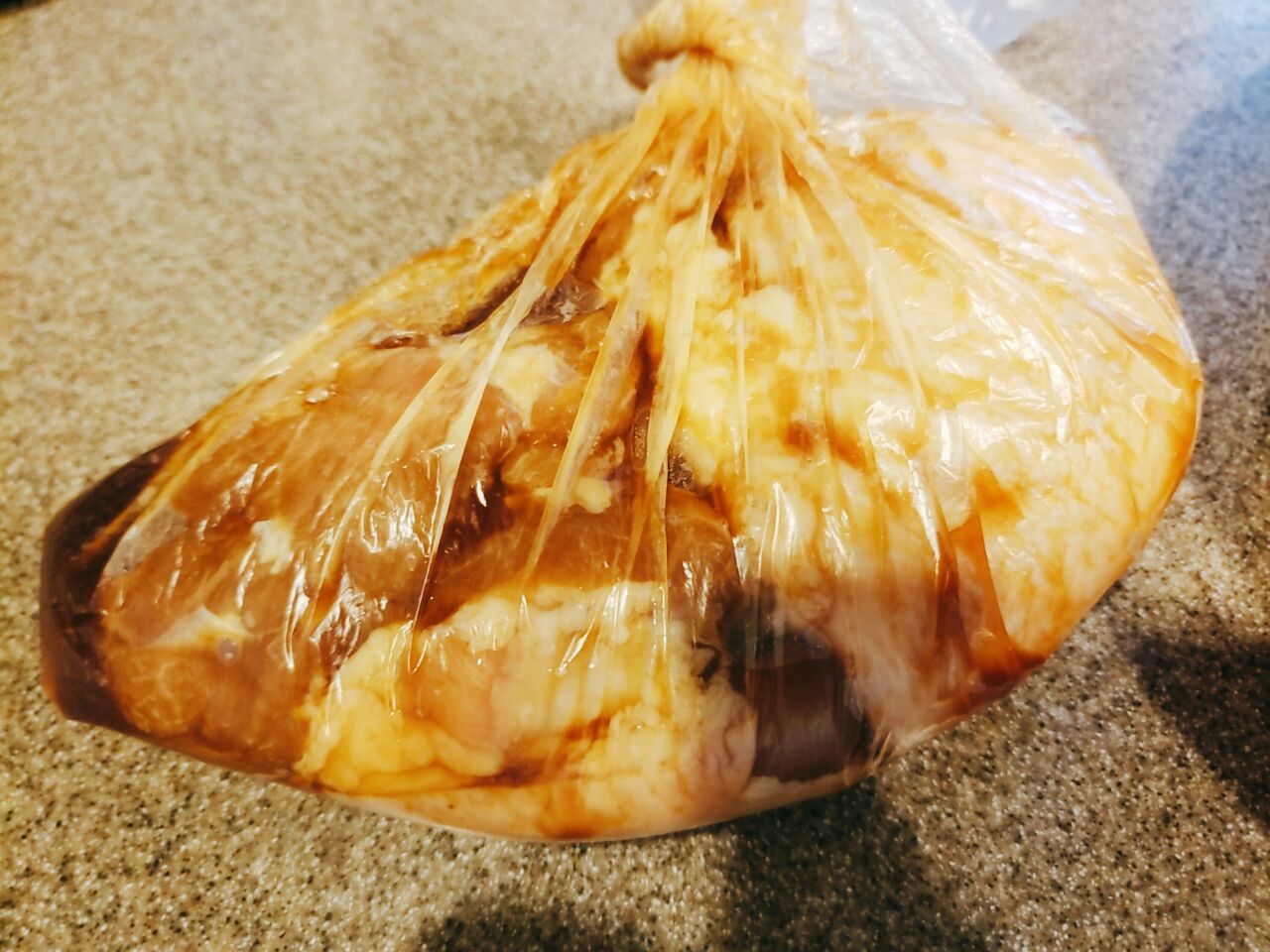 前日のうちにビニール袋に鶏モモ肉2枚を入れて