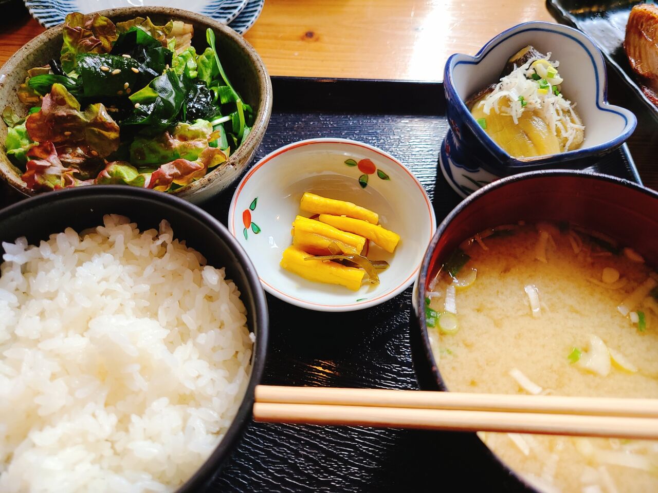 小鉢の内容は茄子の煮浸しにしらすがかかってるの。