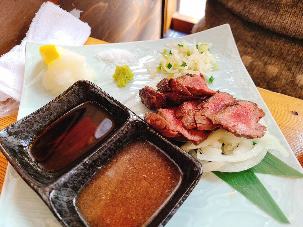 塩、わさび、大根おろし、レモン、ポン酢、おろし玉ねぎソースと