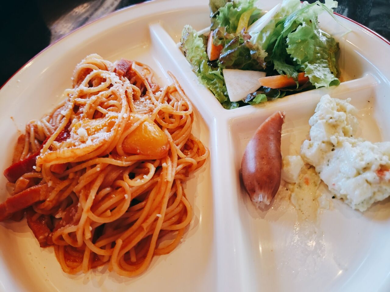 んできなこはお子様ランチプレートのナポリタン。600円也。