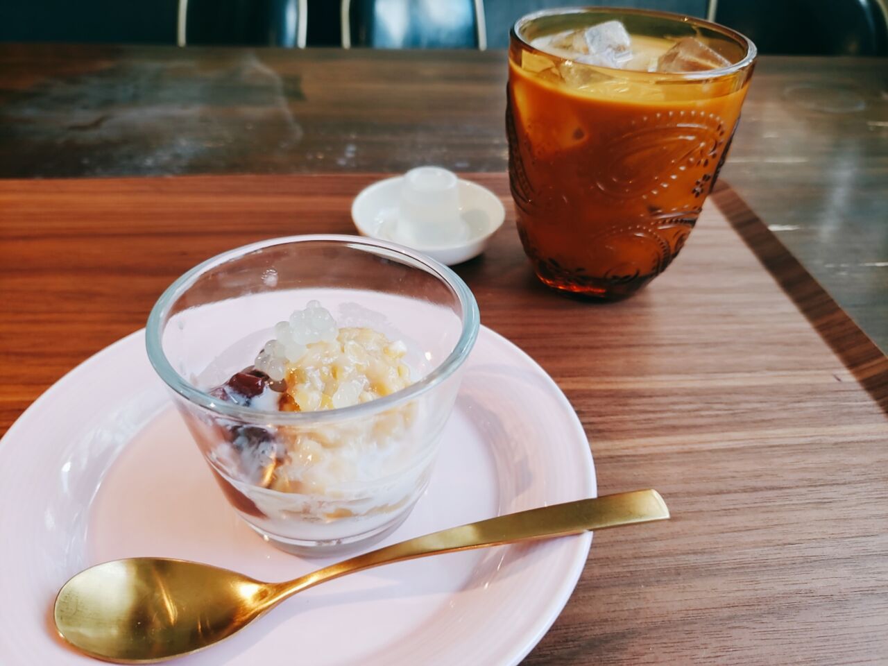 デザート&カフェセットにすると+400円で緑豆ぜんざいが付くと言うのでお願いしちゃった。