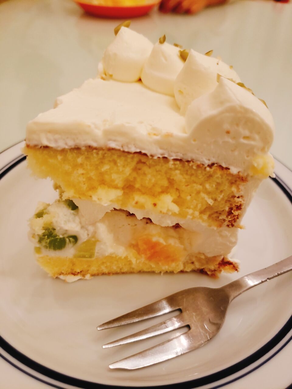 スポンジふわっふわ、生クリームもふわっふわでめっちゃ美味しい…!!