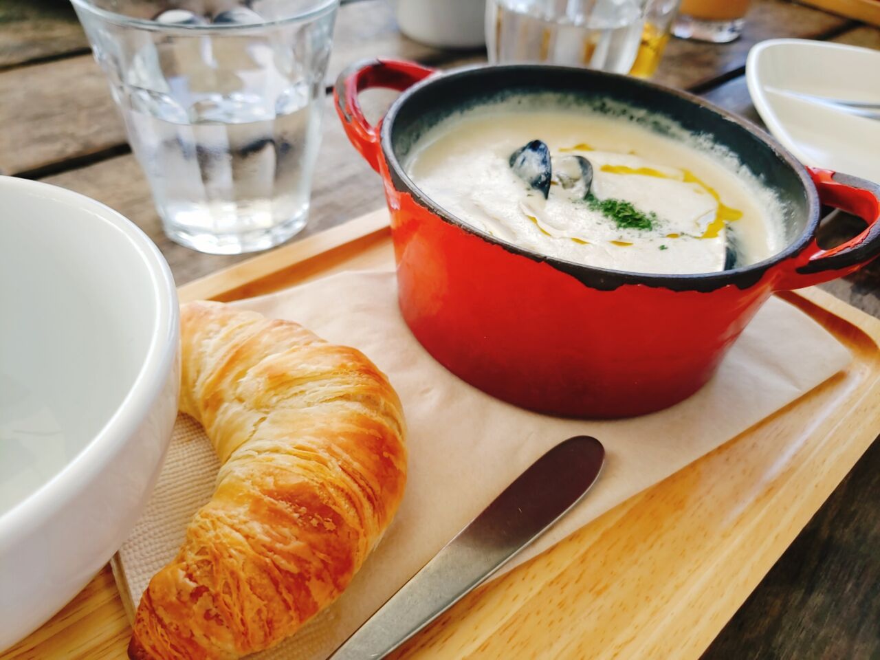 旦那ちゃんはクラムチャウダーをきなことシェア。