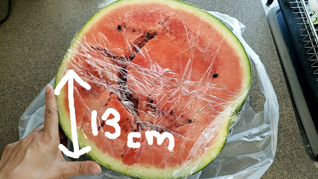 「半分に切っても冷蔵庫に入らないわよーー!」とオカンから悲痛のLINEが笑