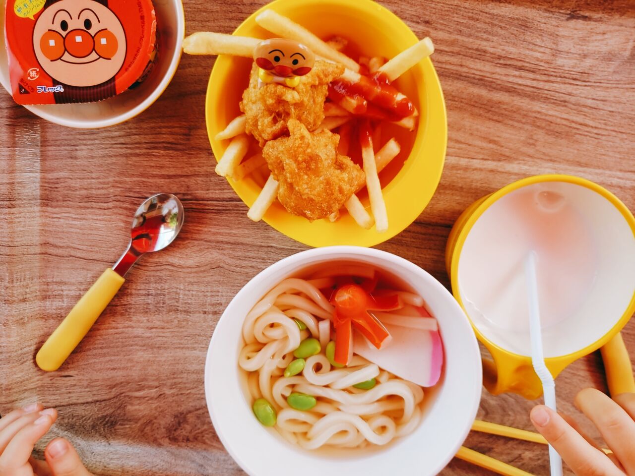 枝豆とカマボコとタコさんウィンナーと言うきなこの好物だらけのうどん。
