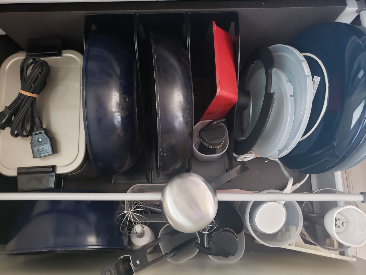 お鍋やフライパンを縦に積んでたから