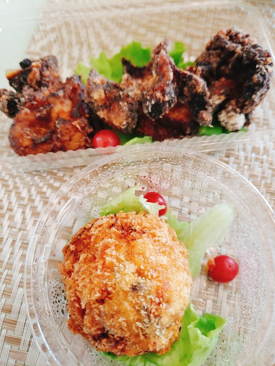 きなこ用に単品唐揚げと里芋のコロッケもお願いし、