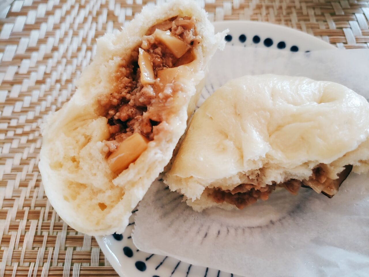 肉まんは中を割ってみるとこんな感じで