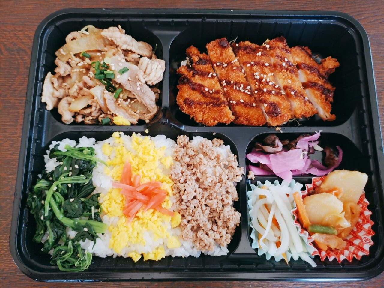 私は男子高校生が小躍りしそうな三色ランチにしてみたよ。