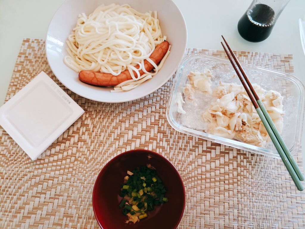 あんこさんの離乳食用にうどん茹でるため私もうどん。
