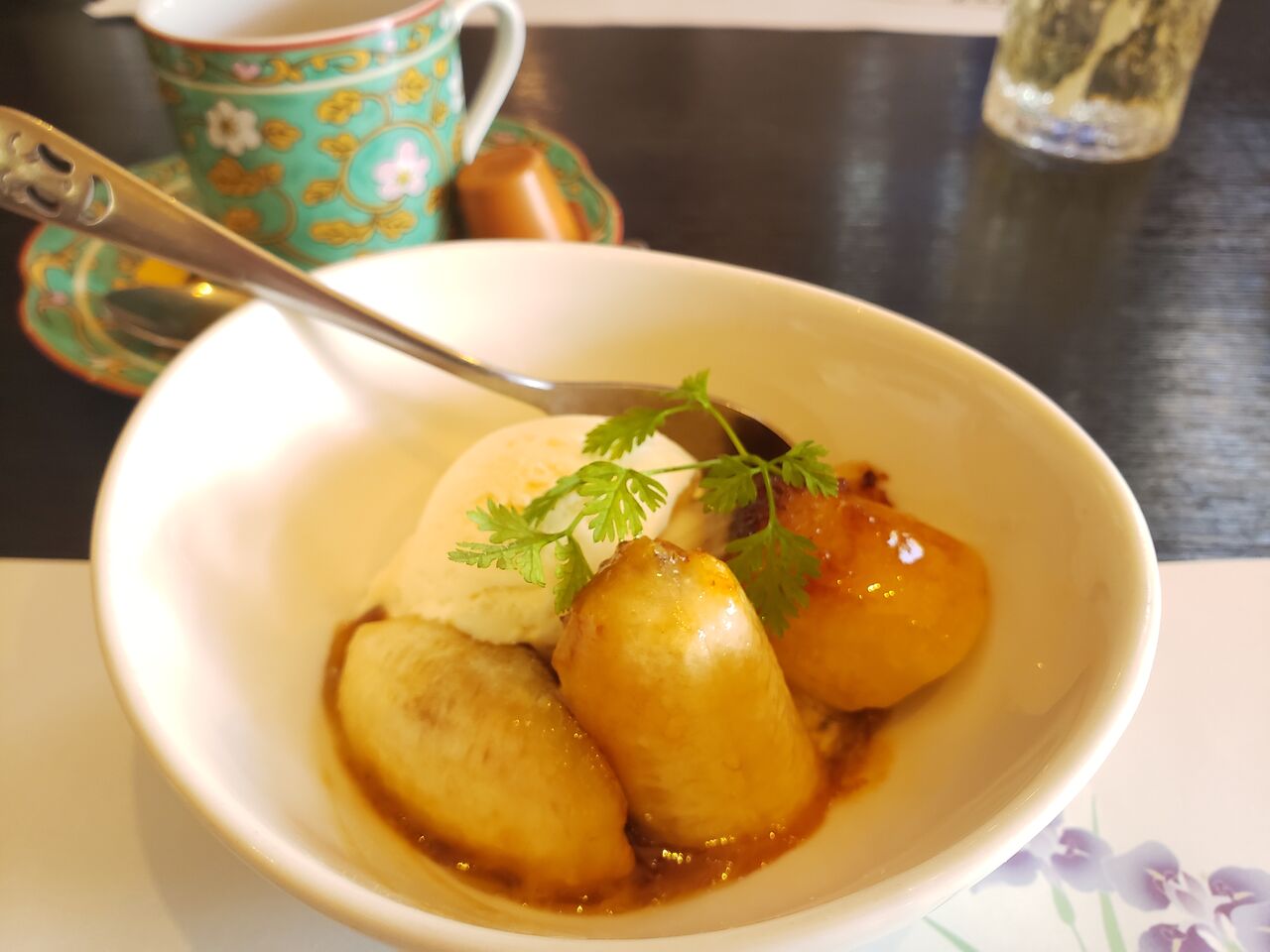 キャラメリゼされたバナナが香ばしくて甘くてびっくり仰天でした。