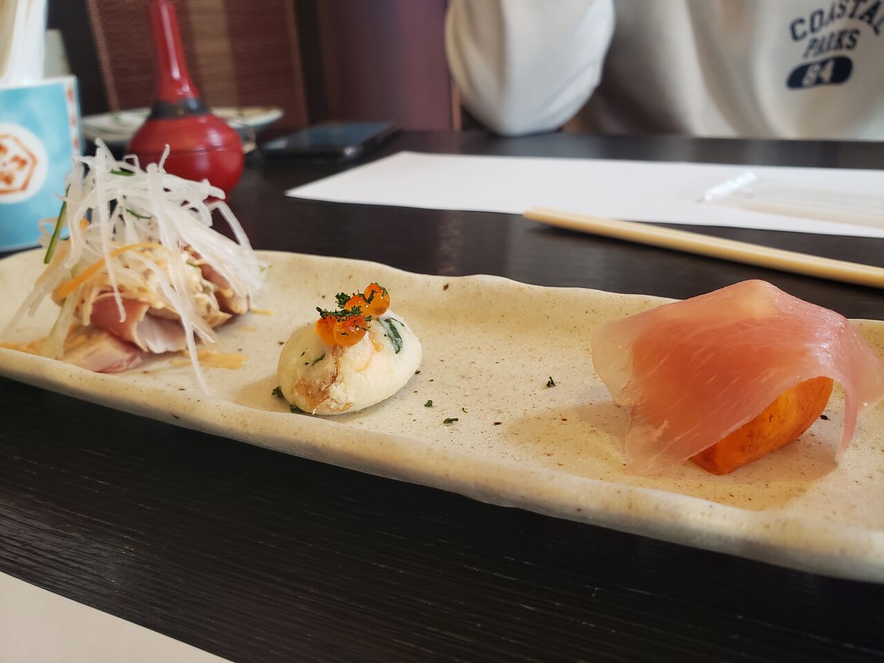 柿にクリームチーズと生ハムが乗ってるやつ。