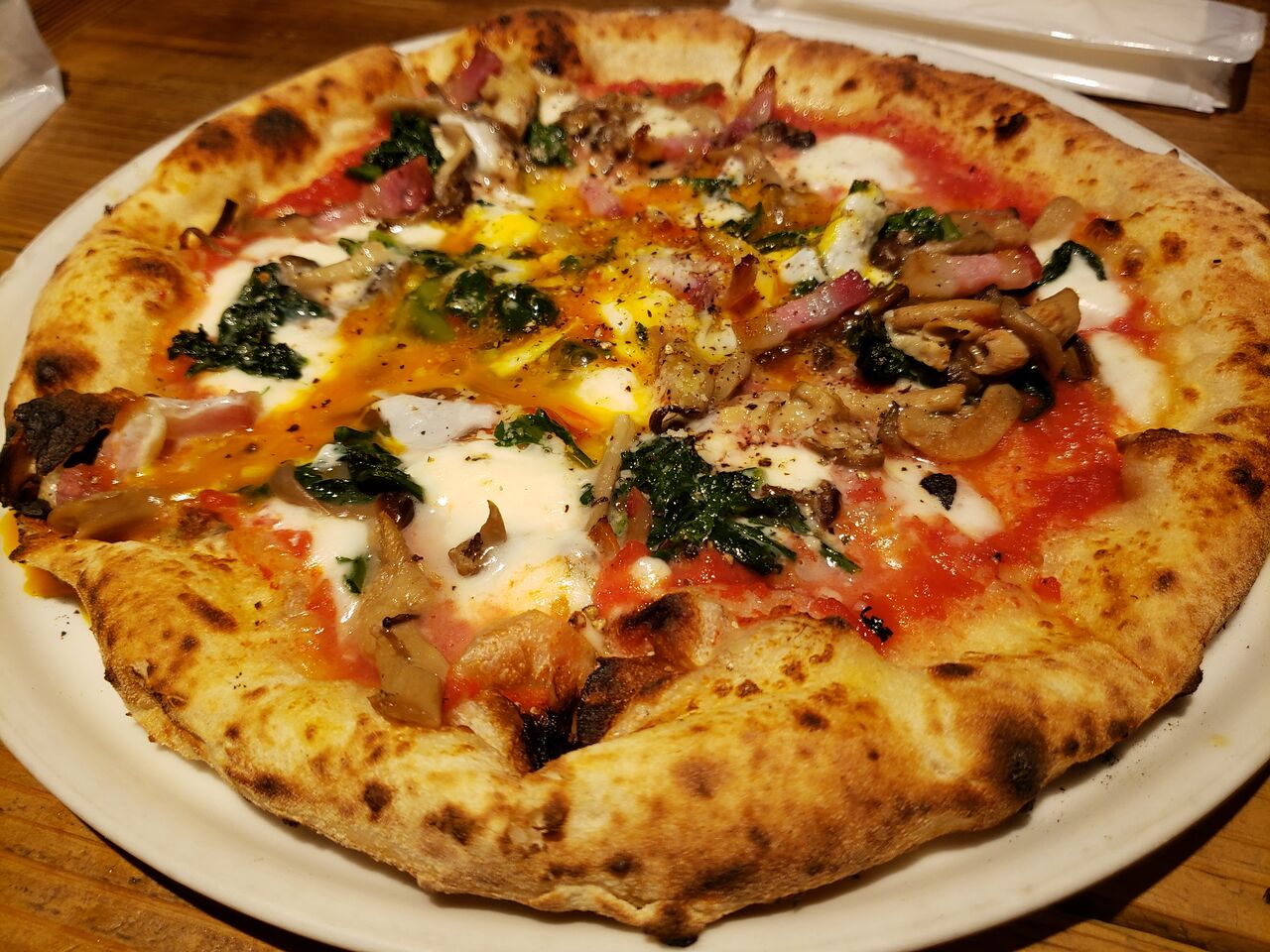 このとろりーんととろけた玉子の黄身をピザ生地の端っこ部分でこそげ取りたい欲求…。