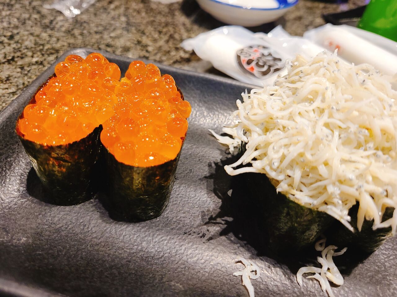 これまたいつもの100円寿司とは違ってイクラがプリプリで大きい!
