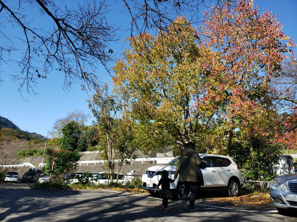 駐車場が秋めいてて