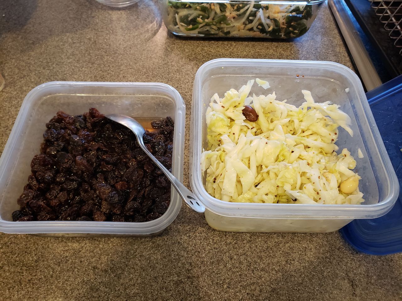 ちなみにレーズン酢はハチミツ大さじ3と酢大さじ5を1分半レンチンしたものに