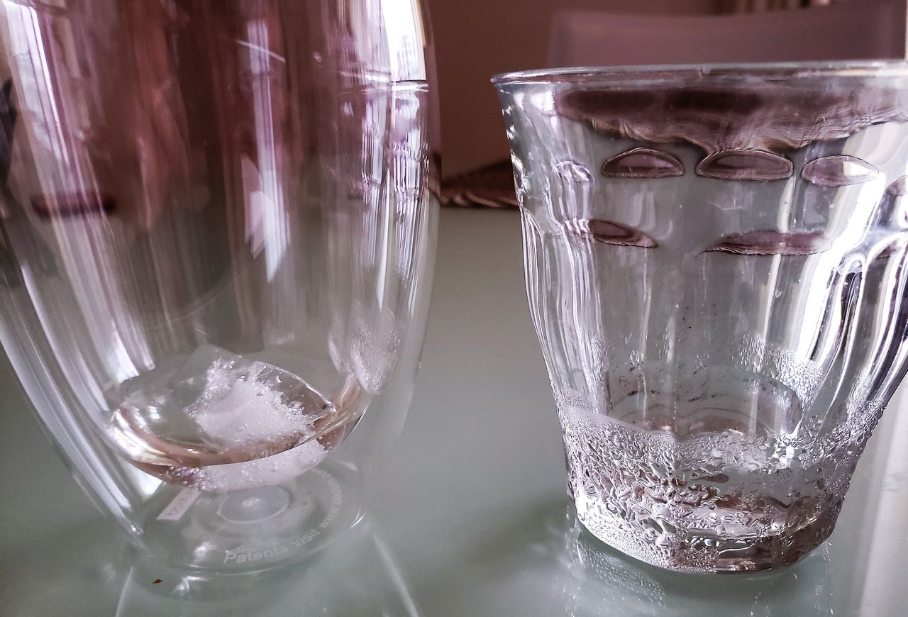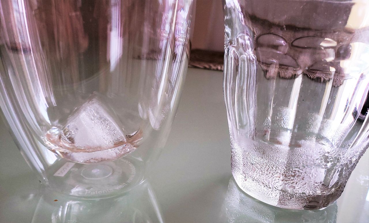 DURALEXは半分以上氷が溶けて、しかも結露べしゃー。