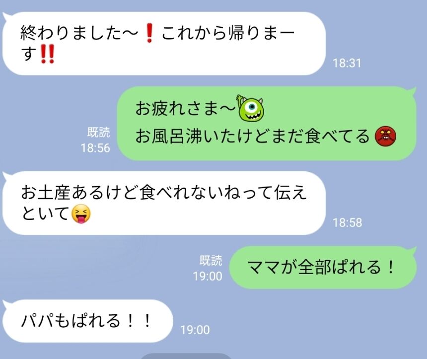 めっちゃイライラしてたら旦那ちゃんから「今から帰るLINE」。