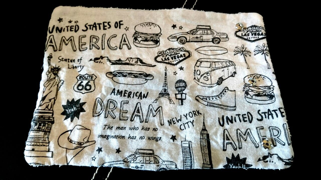 20cm×25cmくらいに切った手ぬぐいとタオルを中表にして縫い合わせてスナップボタンつけただけー。