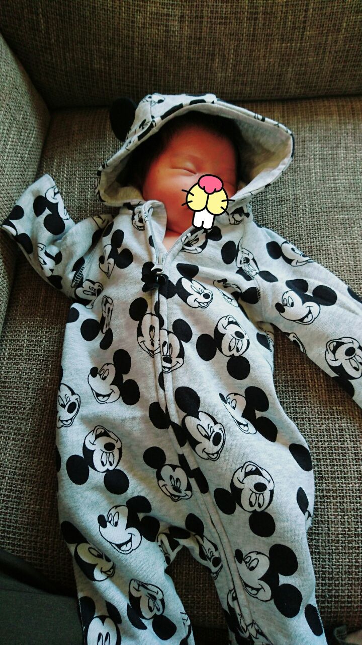 唯一新しく買っておいたH&Mの長袖ロンパースは1-2ヶ月用が生後18日にして既に若干ぱつんぱつん(°Д°)