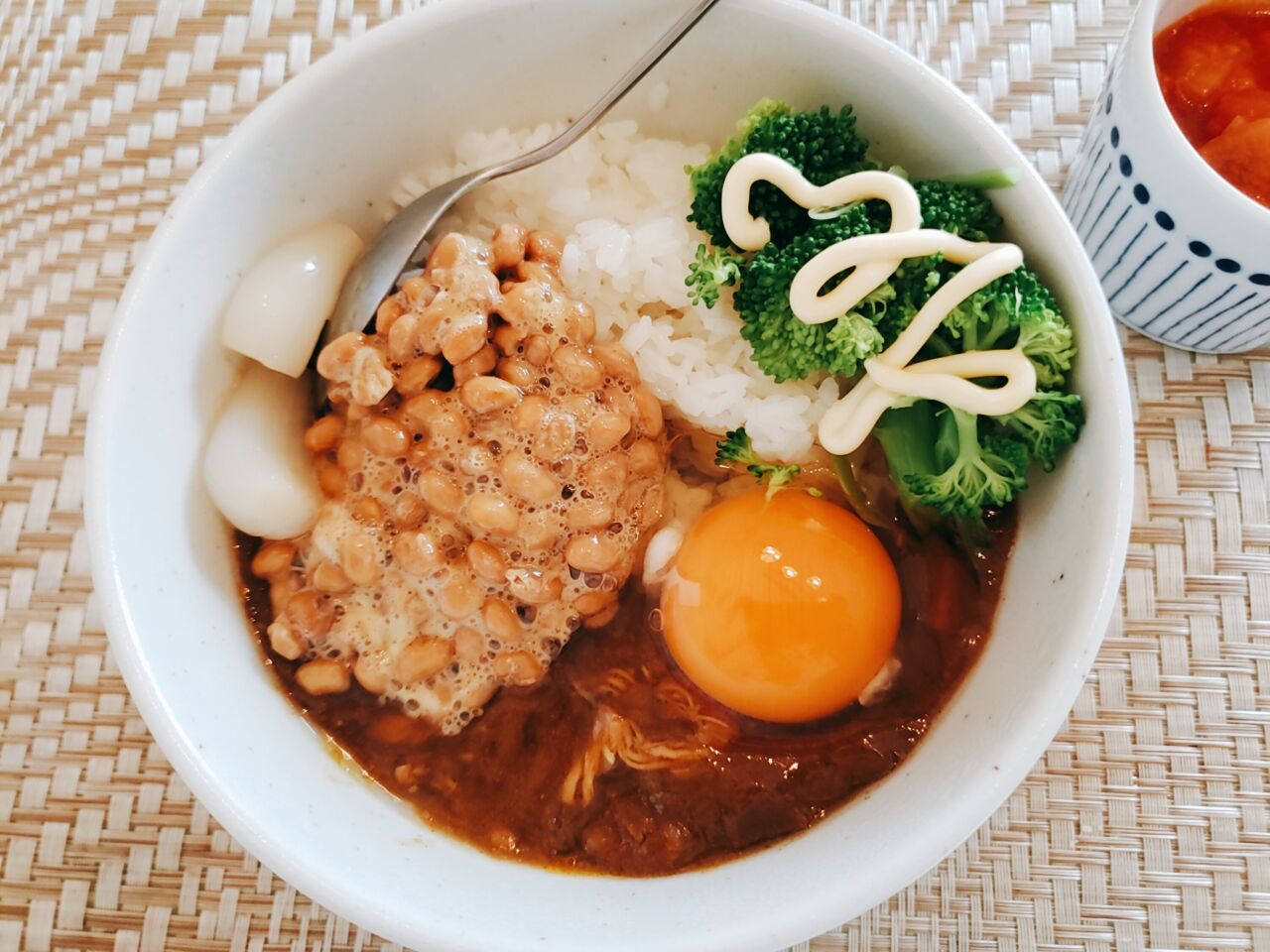 納豆&生卵&なぜかブロッコリートッピング。
